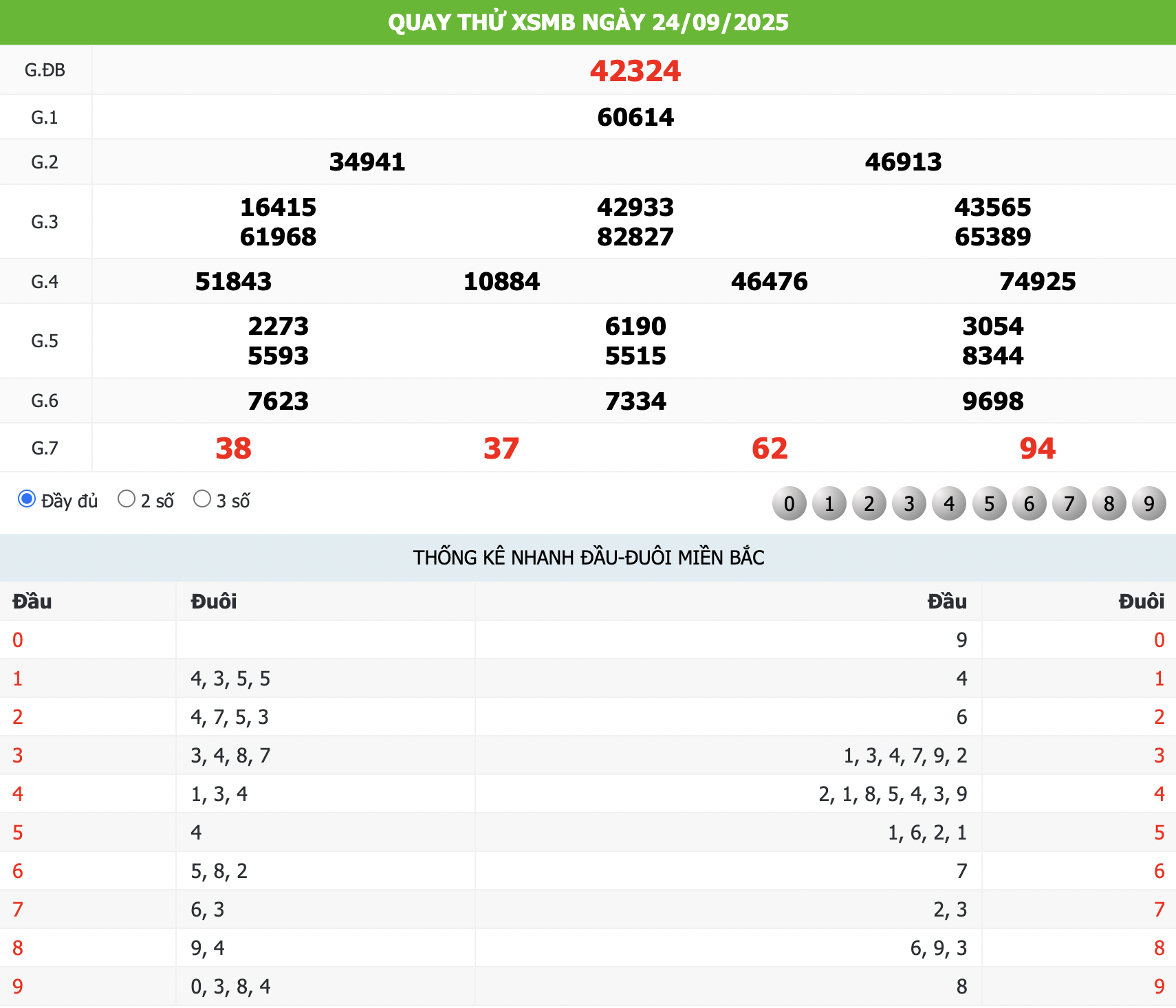 🍀 Tham khảo Quay thử XSMB hôm nay 24/09/2025: